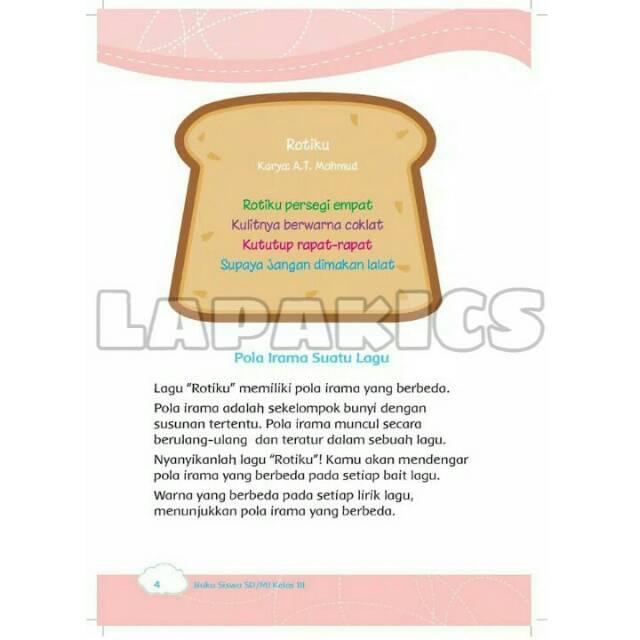 Materi ini terdapat pada pelajaran kel. Lagu cicak di dinding apakah termasuk lagu yang memiliki pola irama sederhana, yang di setiap baris hampir sama. Tunjukkan baris lagu yang memiliki pola yang sama. Siswa membandingkan dua lagu yang memiliki pola sama dan pola yang berbeda melalui kegiatan menyanyi. Belajar pola irama merupakan materi kelas 3 sekolah dasar,.